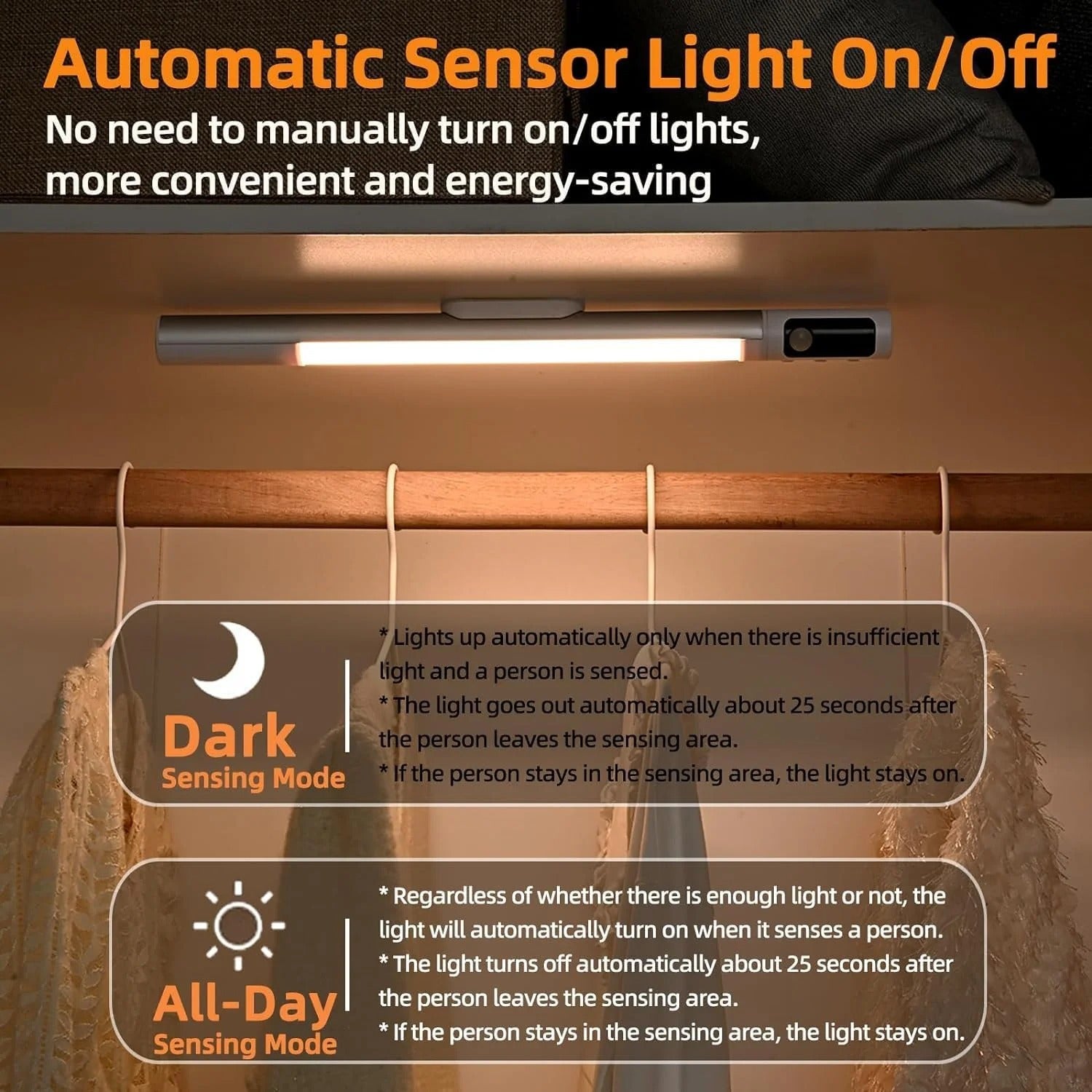 Illuminate any space effortlessly with our Motion Sensor Lights—sleek, wireless LED bars that automatically activate with movement. Designed for convenience, safety, and style, these lights are perfect for staircases, closets, hallways, or cabinets.