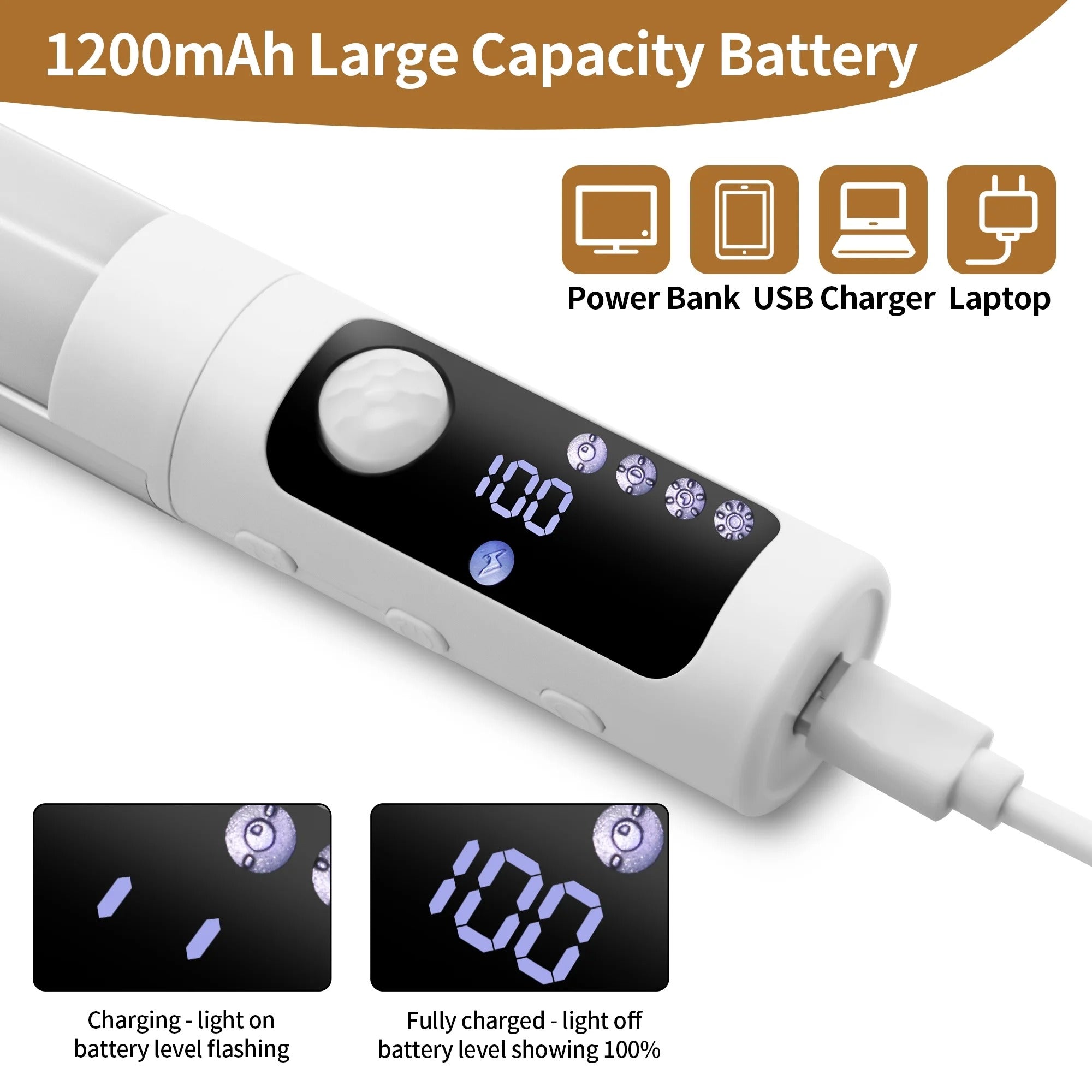 - Power: USB rechargeable lithium battery.