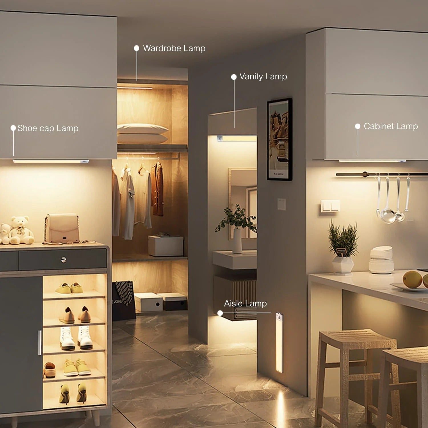 - Auto shutoff: Lights turn off after 20 seconds of inactivity to conserve power.